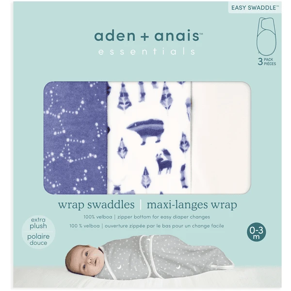 aden + anais™ essential s easy swaddle™ pucksack 1.5 TOG 3-pack scandinavian sky Velboa 0-3 maanden