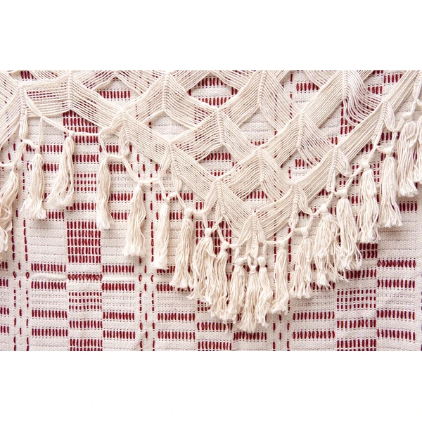 Traditioneel macramé handwerk en handgeknoopte sierrand als optische high light .