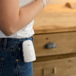 - Draadloze ouderunit is oplaadbaar met lithium batterij en wordt geleverd met een 5V voedingsadapter (micro USB-aansluiting). Autonomie van 8 uur