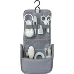 - Negen onmisbare accessoires voor babyverzorging: badthermometer, Digital koortsthermometer, schaar, nagelknipper, haarborstel, bijtring, babytandenborstel, zuigmond voor neusafscheiding, nagelvijl