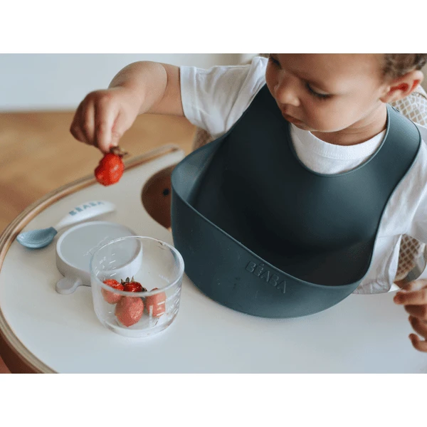 - Als baby gewend raakt aan vast voedsel, wordt het siliconen slabbetje al snel een BEABA siliconen slabbetje wordt al snel een onmisbaar accessoire.