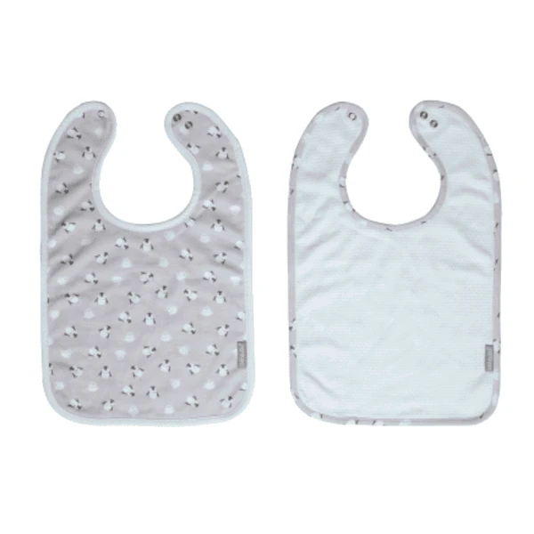 De set bestaat uit twee bébé-jou slabbetjes. De slabs hebben een handige sluiting met drukknopen en hoef je dus niet over het hoofdje van je kleintje te trekken. De slabbetjes hebben een trendy look. De voorzijde is van jersey, de achterzijde is van badstof. Alle bébé-jou badstofproducten zijn Öko-Tex-gecertificeerd en wasbaar op 40°C.