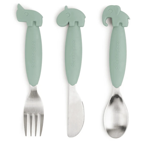 Het Ozzo mes, de Nozo vork en de Elphee lepel in het groen maken alleen eten echt leuk! De groene kleur past perfect bij de rest van de serviescollectie van Done by Deer .