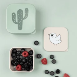 De set is ideaal om eten mee te nemen naar de kleuterschool, school of uitstapjes.