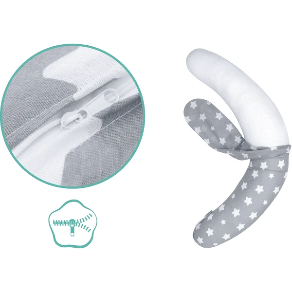 Wanneer uw kleine zonnetje geboren is, kunt u het kussen gebruiken als verpleegkussen en het ondersteunt u en uw ergonomische houding bij het geven van borstvoeding. Het kussen is speciaal ontworpen om een stabiel, stevig lichaam te creëren met voldoende vulling om u voldoende steun te bieden. Bovendien zorgt de geruisloze holle vezelvulling ervoor dat uw kleine lieveling niet wordt gewekt door ritselende geluiden als hij na de borstvoeding in uw armen in slaap valt. Om ervoor te zorgen dat het borstvoedingskussen tijdens de borstvoeding op zijn plaats blijft, kunt u het fixeren met de praktische klittenbandsluiting. U kunt ook de klittenbandsluiting gebruiken om van het kussen een knuffelnest te maken waar uw baby zich beschermd en veilig voelt.