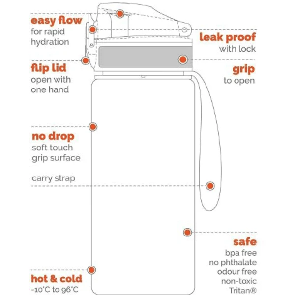 De Soft-Touch-handgreep met matte structuur vermindert het risico dat de fles naar beneden valt en maakt het makkelijk om te dragen.