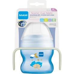 De getailleerde vorm en de ergonomische, antisliphandvatten maken het voor baby’s en peuters gemakkelijker om de beker vast te houden. Bovendien gloeien de handvatten in het donker, zodat baby’s en ouders de fles gemakkelijk kunnen terugvinden – voor rustigere nachten. Dankzij het afsluitdeksel kan de drinkbeker worden afgesloten en dus gemakkelijk worden meegenomen voor onderweg. De MAM Starter Cup kan in de vaatwasser gereinigd worden en is geschikt voor kinderen vanaf 4 maanden. Alle afzonderlijke onderdelen van de MAM Starter Cup kunnen worden gecombineerd met andere MAM drinkbekers.