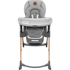 De Minla kinderstoel groeit met je kind mee. Het ondersteunt de benen in de eerste maanden met de beensteun en wanneer ze groot genoeg zijn om te staan, houden de verschillende posities ze precies waar je ze wilt hebben.