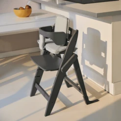 - Het zitkussen en het kussentje voor de kruisriem kunnen ook met een klittenbandsluiting aan de respectieve stoelelementen worden bevestigd om te voorkomen dat ze wegglijden of naar beneden vallen.