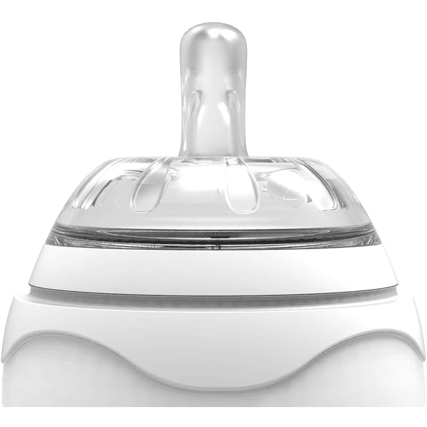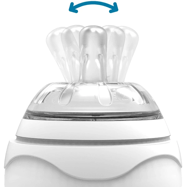 De speciale antikoliekspeen van de Nuvita babyfles imiteert de moederborst in