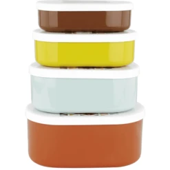 - Vierdelige lunchbox set bestaande uit vier lunchboxen van verschillende afmetingen.