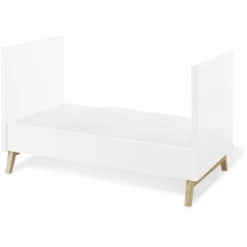 Een 2-delige set bestaand uit een kinderbed inclusief lattenbodem en ombouwzijdes en extra brede commode met plateau. Met de ombouwzijdes kan het babybed tot kinderbed of kinderbank worden omgebouwd.