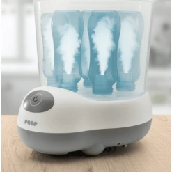 Met de energiebesparende oververhitte stoomtechnologie desinfecteert de vaporizer tot 8 babyflessen en fopspenen snel en betrouwbaar in 12 minuten. Dit beschermt uw baby tegen schadelijke bacteriën en kiemen. Dankzij de daaropvolgende droogfunctie van 30 minuten zijn de flacons en accessoires direct klaar voor gebruik.