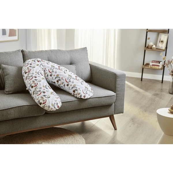 - Set van multifunctioneel verzorgingskussen (190 x 35 cm) en breed aankleedkussen (85 x 72 cm).