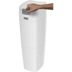 De foliebuis in de cassette biedt plaats aan 190 luiers (test uitgevoerd met luiers maat 1). De emmer heeft een intelligente cassettewisselstand en het geïntegreerde kindveilige mes maakt het gemakkelijk om de volle tube af te snijden. De meerlaagse hoge barrièrefilm sluit geurtjes optimaal in en zorgt zo voor een aangenaam binnenklimaat zonder onaangename geurtjes.