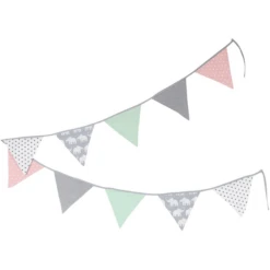 Met de vlaggenslinger schaf je een mooi decoratie-element aan voor verschillende doeleinden. In de kinder- en babykamer is de vlaggenslinger van stof een sierelement dat perfect bij andere producten van deze ULLENBOOM designs past. Als baby-slinger wekken de stoffen vlaggetjes de aandacht van de baby, als deze door luchstromen lichtjes op en neer bewegen.